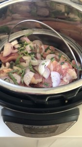 Lately I have been cooking my shallot chicken thighs in the instant pot. They do not come out as pretty as when oven baked, but they are a super easy hands off option. I can put them in before taking the dog for a walk and they are done by the time I get back…love that. Here is what I do.