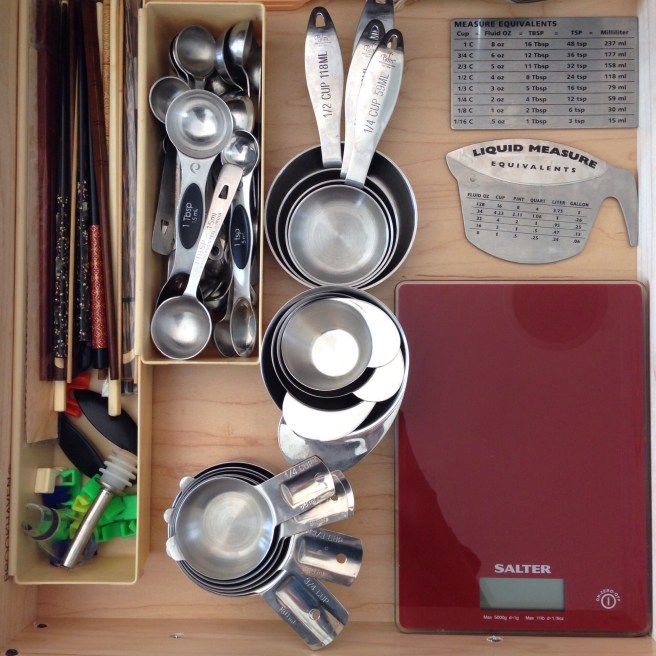 I used to have these magnets on my fridge, but they found a new home in this measuring drawer for quick reference when I am cooking.