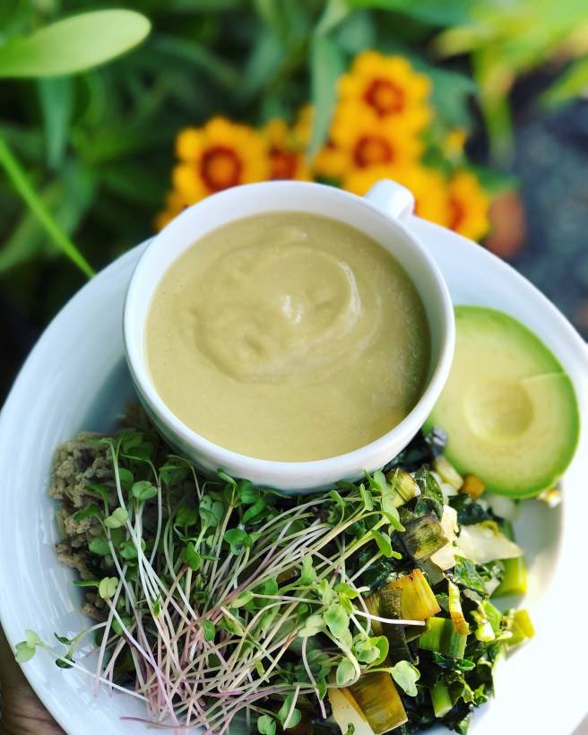Lately I have been making a new version of soup based on my Creamy Cauliflower Leek Soup base. It is delicious and I love the addition of watercress, which is a nutrient powerhouse, and is naturally anti-histamine. This version is made in my Instant Pot, but can also be done stovetop if you don’t have one. I use water as the liquid, but you can certainly opt for broth. Meat broth or juices are often problematic for me due to their high histamine content, but they do make an even tastier soup, so if you tolerate them, GO for it!
