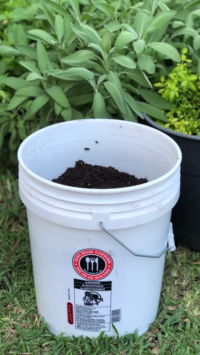 This was our initial system and it worked well. We added our kitchen scraps and used leaves gathered from the neighborhood as our browns, along with some shredded paper. At some point my husband pointed out that I had NO IDEA what the neighbors might be spraying on their lawns! Ack! That is when I switched to organic coconut coir as our brown carbon rich material. I keep a bushel bin of it next to the compost bins so it is easy to cover food scraps every time we empty our kitchen collection bin. We are restaurant supply crazy over here, so we use this 4 quart graduated food container and it’s matching lid for collecting our food scraps. We used to keep this in the sink, but ants were a problem so now we keep it in the fridge. It is big enough to let us go a few days before emptying it.