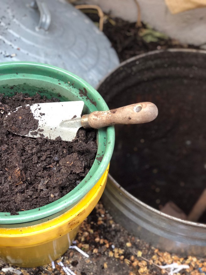 We used to donate our kitchen scraps to a local farm, then later to a botanical garden. At some point I decided I wanted to use them to make my OWN compost, but I wasn’t eager to invest in a pricey 2 bin system. Somewhere way back, I read that you could compost in a trash can. That intrigued me, so I improvised this system and did some additional tweaking along the way to make it even better.