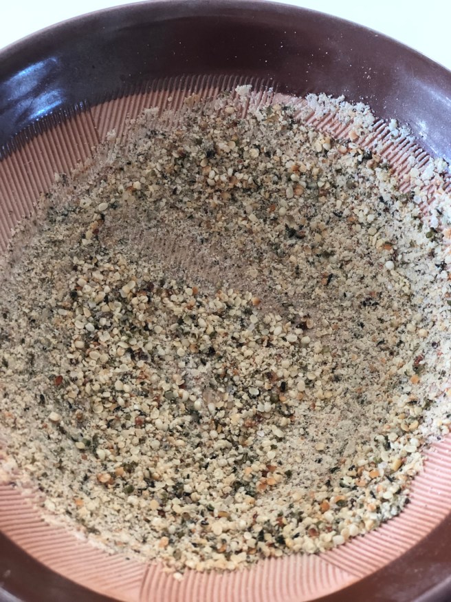 Years and years ago as a teenager I did a stint of eating macrobiotic and back then we made a LOT of gomasio and put it on everything! I can just taste it now. So good! We made it with sesame seeds and sea salt…simple enough. I decided to give it a go with hemp hearts, which are my current favorite and a recent successful food reintroduction.