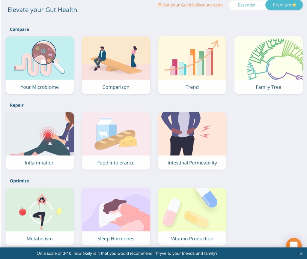 If you have been following me for a while then you know that I am a biohacker at heart. I am ALWAYS tinkering with something to advance my health goals. These days I feel pretty great most days, which I can assure you is HUGE progress, but there is always room for a little more. I attribute much of my healing to improvements in gut health. I have used gut health testing in the past as a barometer of my progress, originally with Ubiome, which went belly up in 2019 (pun intended) and then later with Viome. After having used both of those platforms I recall wishing there was a test that combined the bacterial diversity data of Ubiome along with the food recommendation/avoidance lists of Viome and voila, along came Thryve Inside.